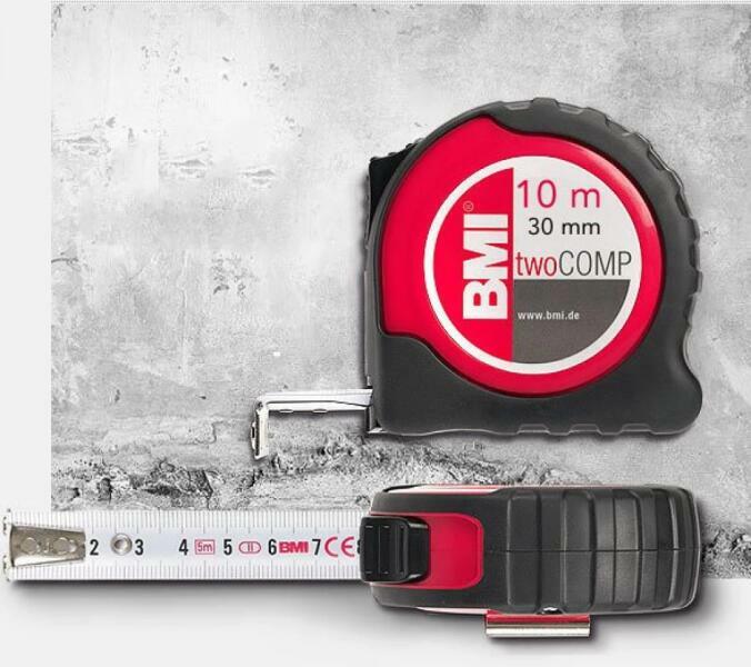 BMI Mérőszalag 10 m / 30 mm 472041031Ütésálló ABS-műanyag, 2-komponensű tok. Automatikus szalagvisszahúzás egy pengerögzítő, övcsipesz. Tok: 88 x 88 x 45 mm.