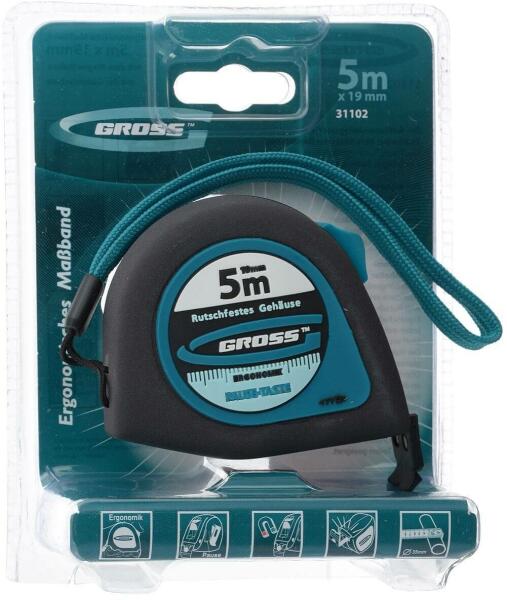 Mérőszalag. Hasznos otthon, a garázsban vagy az építkezésen. A készülékház könnyű és tartós műanyagból készült, amely ráadásul gumival van bevonva. A ház automatikus reteszelő gombbal és p raktikus övcsipesszel van ellátva. Az acél mérőszalagot ráadásul nejlonnal borítják, ami megvédi a korróziótól. Tulajdonságok: Nylonszalaggal borított szalag Pa ska tartozé