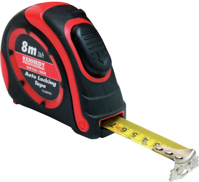 A szalag tükörnyomással készül és hosszabb élettartamot biztosító nejlonborítással van ellátva. A kétoldali fokbeosztás rendkívül előnyös mennyezetek, ablaktokok stb. mérésekor. A mérőszalag automatikus zárral van ellátva, amely pozícióban tartja a szalagot használat során, majd a kiengedő gomb lenyomásával felcsévélhető. További előnye a mágneses kihúzókapoc