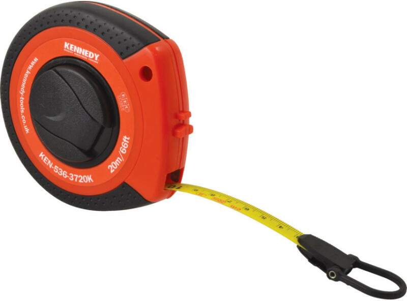Visszatükröződés mentes acélszalag, és nejlonnal fedett lemez, a maximális tartósság érdekében. A szalag egy ütésálló ABS műanyagból készült tokban található, gyorstekerő fogóval és övcsattal. A könnyű használat érdekében a szalag egy egyszerűen használható műanyag hurokban végződik, amelynek végén egy fémkampó található. Méret: 20 m / 66'