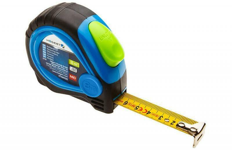 HÖGERT Mérőszalag 8 m x 25 mm, teflon bevonatú, MID (HT4M428) Termék információ: Anyaga : acél, műanyag Méret: 8m/25mm Univerzális, acél mérőszalag II pontossági osztály Nagyobb tartósságot és jobb kopásellenállást biztosító teflonnal bevont szalag Mérést elősegítő szalagrögzítő Erősített végzáró kampó két szegeccsel összeszorított lemezből Kényelmes keze