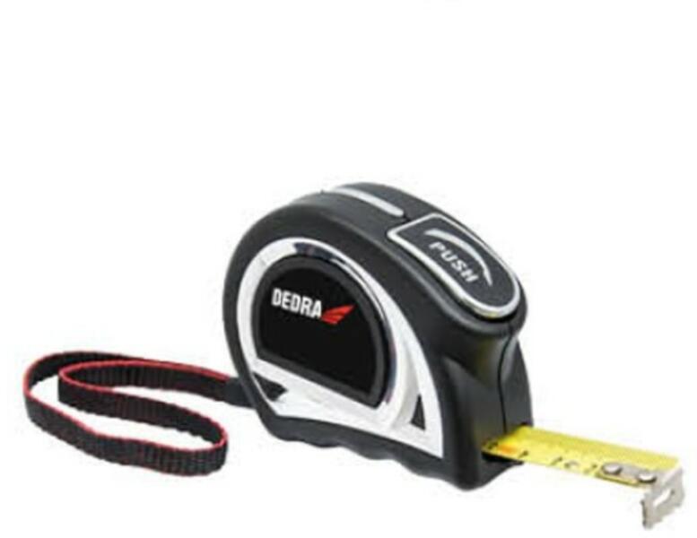 Termék leírás: Dedra mérőszalag 3 m automata blokkolás akasztóval n ylon, szélesség: 19 mm