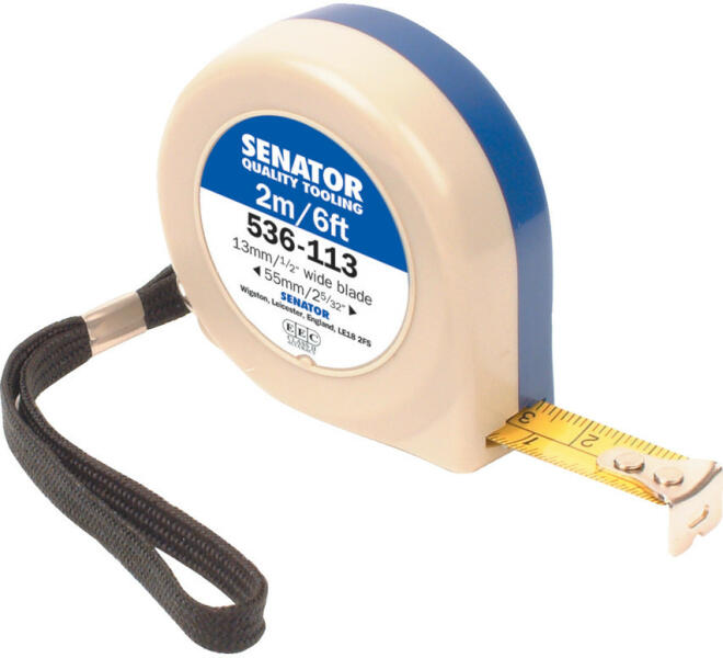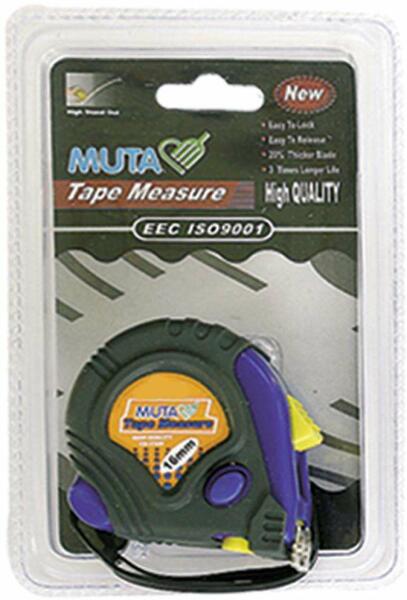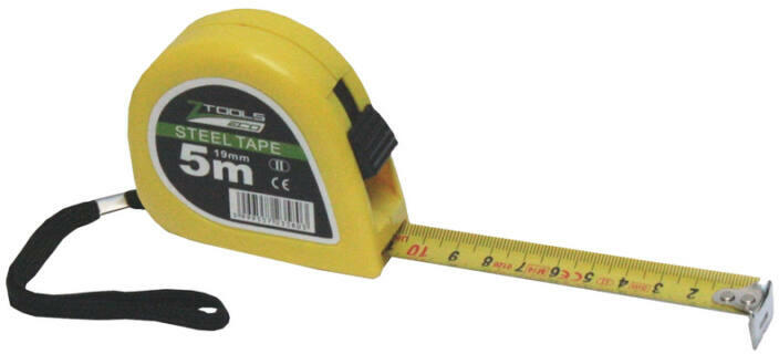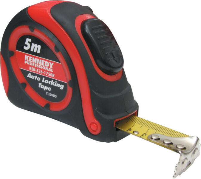 Ütésálló műanyag ház csúszó szalagzárral. Zárórugóval segített szalagvisszafutás. Fém akasztóhorog szegecsrögzítéssel. Acél övakasztó és csuklószíj. A szalagzár a kívánt helyzetben rögzíti a szalagot. Erős, korrózióálló szalag és akasztóhorog. Az önbeálló horog biztosítja a belső és külső mérések pontosságát. Metrikus és colos. Méret: 5 m / 16' x