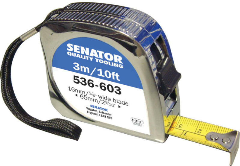 Ütésálló műanyag ház csúszó szalagzárral. Zárórugóval segített szalagvisszafutás. Fém akasztóhorog szegecsrögzítéssel. Acél övakasztó és csuklószíj. A szalagzár a kívánt helyzetben rögzíti a szalagot. Erős, korrózióálló szalag és akasztóhorog. Az önbeálló horog biztosítja a belső és külső mérések pontosságát. Méret: 3 m / 10' x 16 mm Súly: 115 g