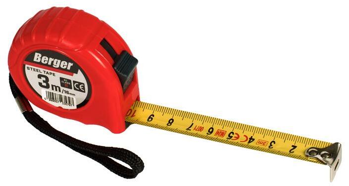 3 méteres hosszúságú, 16 mm szélességű mérőszalag. Stoppos, rögzíthető kivitel, gumírozott ház a leesés okozta sérülés ellen. Gombbal szabályozható a szalag visszahúzódási sebessége.