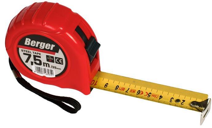Ütésálló műanyag ház Lakkozott, ívelt, edzett sárga acélszalag folyamatos mm osztással Egy ponton rögzíthető szalagzár Pillanat rögzítő gomb Önbeálló szalagvég akasztóhoroggal Csuklópánttal és övcsipesszel Méréspontosság: EU II osztály cikkszám szalag hosszúság (m) szalag szélesség (mm)020601-0001 2,0 12,5020601-0002 3,0 16,0020601-0003 5,0 19,0020601-0004 7,5 25