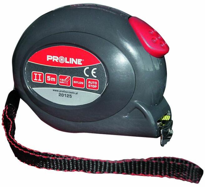 20125 Mérőszalag 5m/19mm, nejlon bevonatú, Proline20125 5 m / 19 mm-es mérőszalag, nylon bevonattal, ProlineSzalagzár kioldó gomb (AUTO STOP)Szalaghuzat - nylon (kopásvédelem)ÖvcsipeszPontossági osztály: IICE tanúsítvány