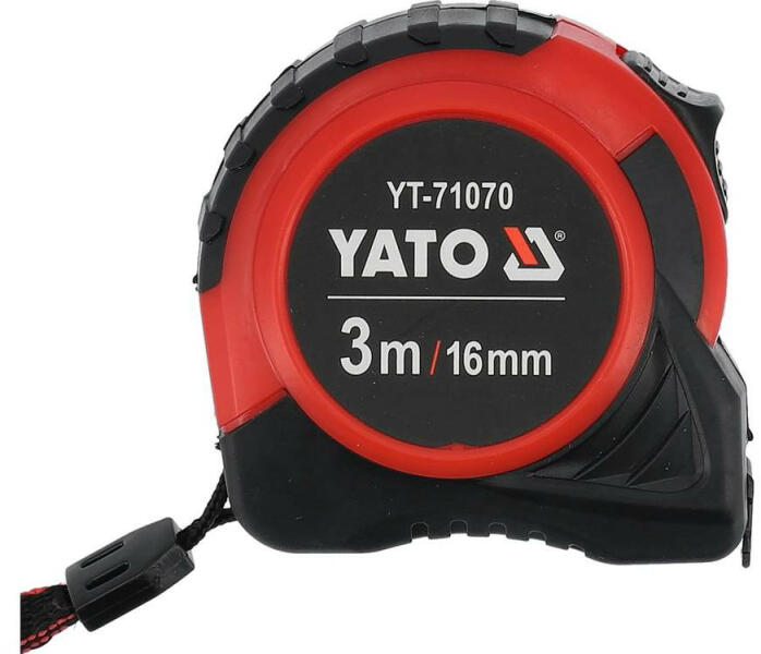 Masszív mérőszalag ergonomikus markolattal, gumibevonatú gombbal és fékbetéttel. ABS műanyagból készült, ütésálló tokkal. Sárga, kopásálló penge, amely rendkívül pontos tintasugaras nyomtatással lett a beosztás nyomtatva. Sima pengevisszahúzás ütközésgátló és kopásgátló funkcióval.