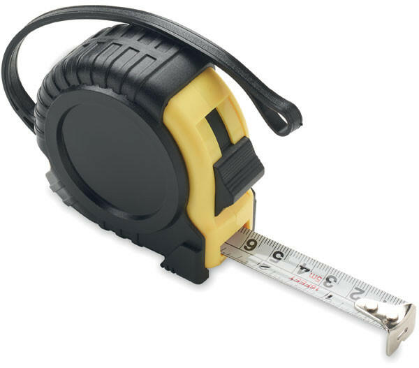 5 méteres (19 mm széles) mérőszalag övcsattal, lámpával, ABS műanyagból. Fém felületekre kiválóan felrakható az erős mágnesek segítségével. Az oldalán lévő PVC matrica ideális lehetőséget biztosít az emblémázásra .