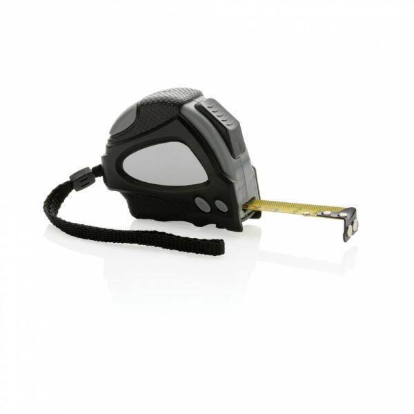 A NEO TOOLS 5m hosszú, 19mm széles, acél tekercses mérőszalag, automatikus zár, két stop gomb. Praktikus automatikus megállító funkcióval van felszerelve, amely megakadályozza, hogy a szalag kinyújtáskor magától visszahúzódjon, valamint két reteszelőgomb lehetőségét kínálja. A NEO TOOLS mérőszalag háza kétféle anyagból készül. A mérőszalag fényes bevonattal rend