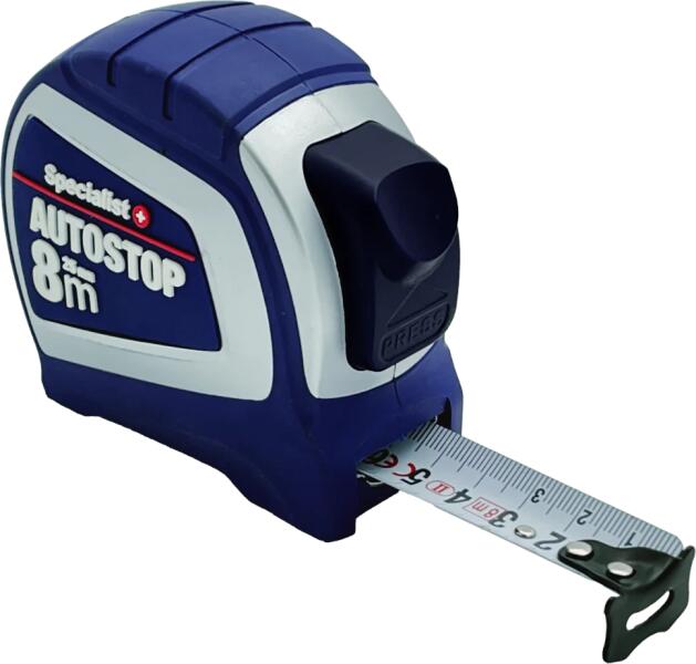 Szalag és horog: 3 szegecskampó biztosítja a tartósságot. Nylon bevonat - a szalag tovább tart. Forma és felépítés: 2. osztályú pontosság. A CE tanúsítvány és a hitelesítési tanúsítvány biztosítja, hogy a mérőszalag rendkívül megbízható és pontos legyen. Lengéscsillapító gumifék védi a szalagot a mérőszalag forgatásakor. Lapos alap a vízszintes stabilitás é