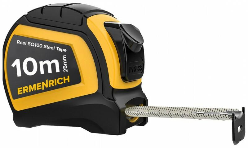 Ermenrich Reel SQ100 mérőszalagA 10 méteres Ermenrich Reel SQ100 mérőszalag mindenféle építési, javítási és befejező munkák szakemberei által nagyra értékelt eszköz. Az univerzális mérőszalag a mindennapi életben is használható – a háztartások elengedhetetlen kelléke. A modell előnyei közé tartozik a (10 méter) hosszú szalag, a megbízható minőségű anyagok, va