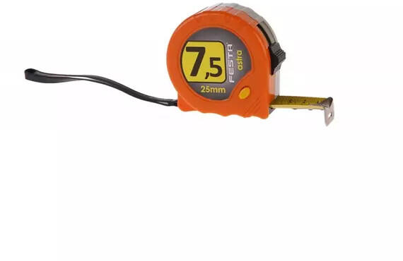 A FESTA Astra Mérőszalag 7,5 méteres hosszúsága és 25 mm-es szélessége ideális választás minden szakember és barkácsoló számára, akik számára a pontosság és a megbízhatóság elsődleges szempont. Ez a mérőszalag minden olyan tulajdonsággal rendelkezik, amelyre szükséged lehet a mindennapi munkavégzés során, legyen szó építkezésről, műhelymunkáról vagy otthoni