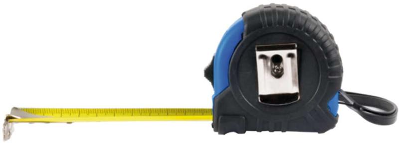 mérőszalag, gumírozott, 1 stoppos, 5m×25mm A gumiborítás és az ergonómikus csúszásgátló elemek megvédik a mérőszalag műanyag testét. Önfeltekercselő szerkezetnek erős rugója van. A STOP gomb csúszásgátló felületkezeléssel rendelkezik. Az íves profilú acél szalag sík helyzetben tartását segíti a mérőszalagnak.