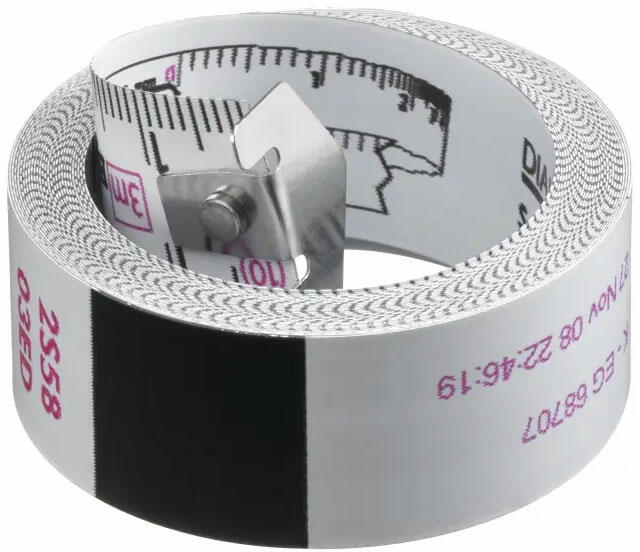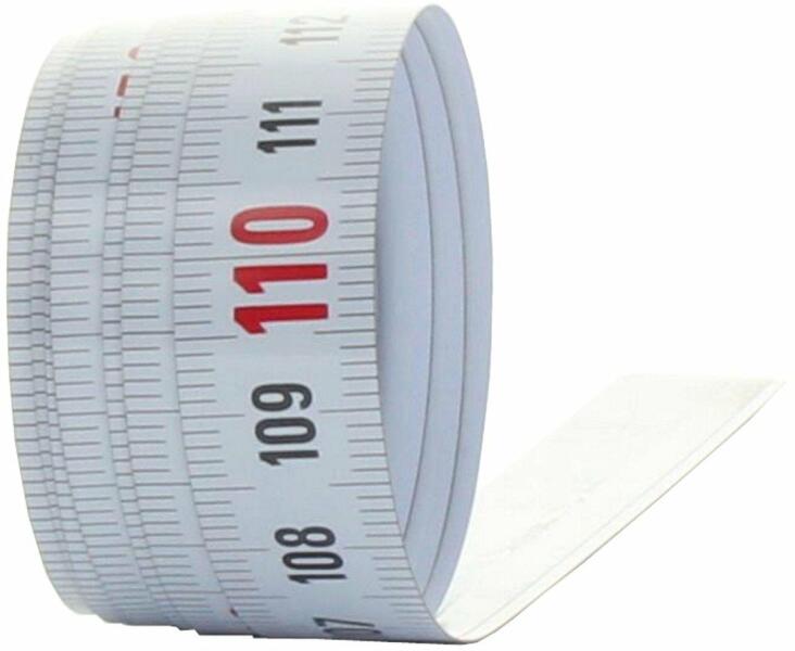 Az öntapadós mérőszalag ideális kiegészítő, a milliméter kiosztás utólagos elhelyezéséhez. Jól használható polcon, asztalon gépen egyaránt. Az öntapadós szalag szélessége 13 mm, anyaga acél, mely fehér lakk bevonattal van ellátva.