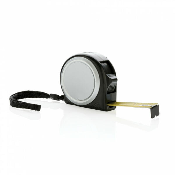 Kompakt ABS szalag csíptetővel és csuklópánttal. 5 méter/19mm-es szalag. Kampóval.