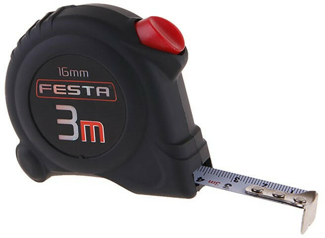 A gumiborítás és az ergonómikus csúszásgátló elemek megvédik a mérőszalag műanyag testét. Önfeltekercselő szerkezetnek erős rugója van. A STOP gomb csúszásgátló felületkezeléssel rendelkezik. Az íves profilú acél szalag sík helyzetben tartását segíti a mérőszalagnak.