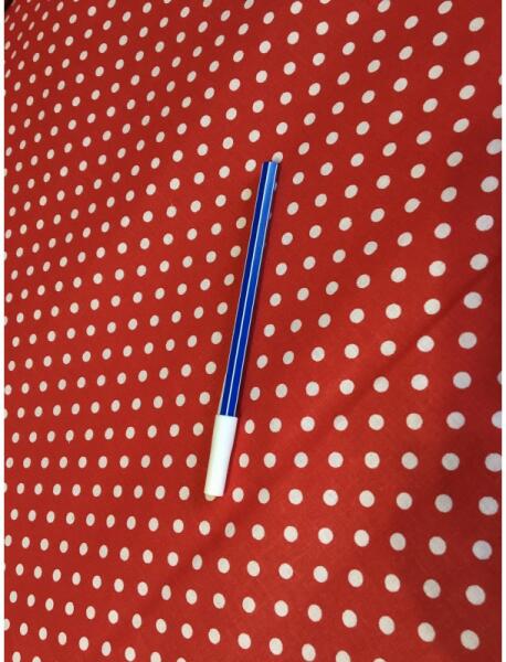 Piros alapon (babos) pöttyös pamutvászon. (A fehér pöttyök átmérője kb. 6 mm. ) A kartonként is emlegetett anyag sokféleképpen felhasználható. Ágyneműk és párnahuzatok, asztalterítők, ülőpárna, szék és szivacs huzatok, sötétítők, kísérőfüggönyök, mindenféle zsákok (ovi, tisztasági, torna, levendula, gyúródeszka... ), ballagó batyuk, tarisznyák, lakásdekor
