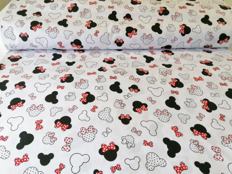 Gyönyörű piros pöttyös masnis - egér fejes mintás pamut méteráru 160 cm széles. Készíthető belőle ágynemű huzat, paplan + párna borítás, ovis zsák, pólya, ülőpárna stb, de ideális kreatív célokra is. Az ára 1 m-re vonatkozik, minimum 1 m vásárolható, felette 10 cm-enként növelhető a kívánt mennyiségig! (1m 10 cm, 1 m 20 cm, 2 m 40 cm stb) Fehér alapon 100% pam