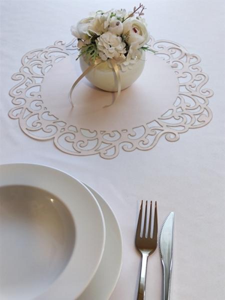 Textil, indamintás szélű asztalközép, bármilyen ünnepi alkalomra, pl körasztalra futó helyett. Kézzel mosható, vasalható.