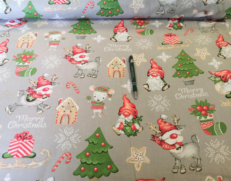 Szürke színű alapon vidám rénszarvas - télapó mintás karácsonyi méteráru 160 cm széles. Készíthető belőle ágynemű huzat, terítő, függöny, székpárna, mikulás - zsák, adventi naptár, de akár ideális dekoráció konyhaablakba is. Az ára 1 m-re vonatkozik, minimum 1m vásárolható, felette 10 cm-enként növelhető a kívánt mennyiségig! (1m 10 cm, 1 m 20 cm, 2 m 40 cm