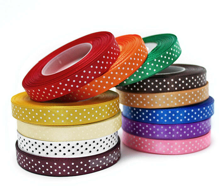 Jellemzői: Szatén szalagok pöttyös mintával, több színben. Kiváló minőségű, pöttyös szalagok dekorációs tárgyak elkészítésére. Ideálisak virágcsokrok, ünnepi, esküvői asztalok díszítésére vagy ajándékok csomagolására. Az ár 1 méterre vonatkozik. 6 mm széles szatén szalag pöttyös mintával