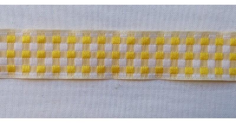 2 cm széles citromsárga kockás, szövött díszítő szalag. A mennyiséget kérjük centiméterben megadni. Pl. : ha 2,6 méter akkor 260 (centiméter).
