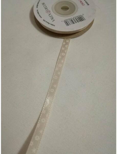 6 mm széles, világos drapp alapon, fehér hópehely mintás, karácsonyi szatén szalag. A mennyiséget kérjük centiméterben megadni. Pl. : ha 2,6 méter akkor 260 (centiméter).