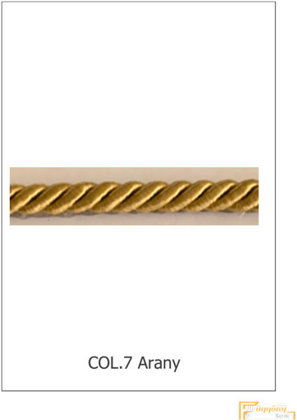 ◤ Kategória: Függöny zsinór ◤ Zsinór vastagsága: 8mm ◤ Szín: Arany ◤ Anyagösszetétel: 70% Acetát 30% Viszkóz A megjelölt ár 1 méterre vonatkozik! Legkisebb rendelhető mennyiség: 5 méter Kategória: Függöny zsinór Szín: Arany Anyagösszetétel: 70% Acetát 30% Viszkóz Legkisebb rendelhető mennyiség: 5 méter Nyolc mm átmérőjű zsinór, aminek a segítségével ká