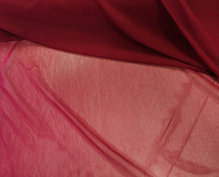Bordó színű nagyon rugalmas háló szerű textil. Ideális sportruházatba bélésnek. Könnyű, jól mosható. Anyaga: 100% poliészter Szélesség: 180 cm