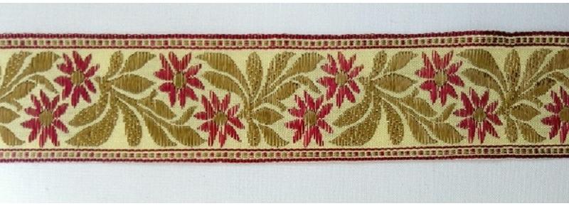 4,3 cm széles, szövött, népi motívumos, díszítő szalag. Népviseletes ruhákra, mellényekre, terítőkre, ballagó tarisznyákra, kézimunkák szélére, ruhák díszítésére. A mennyiséget kérjük centiméterben megadni. Pl. : ha 2,6 méter akkor 260 (centiméter).