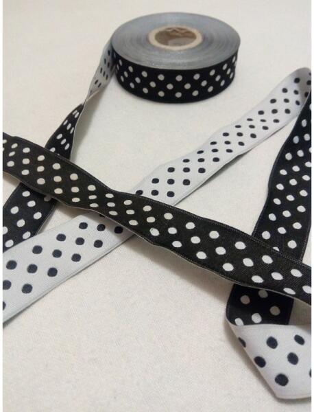 2 cm széles fekete, mindkét oldalát használható, pöttyös, szövött díszítő szalag. A mennyiséget kérjük centiméterben megadni. Pl. : ha 2,6 méter akkor 260 (centiméter).