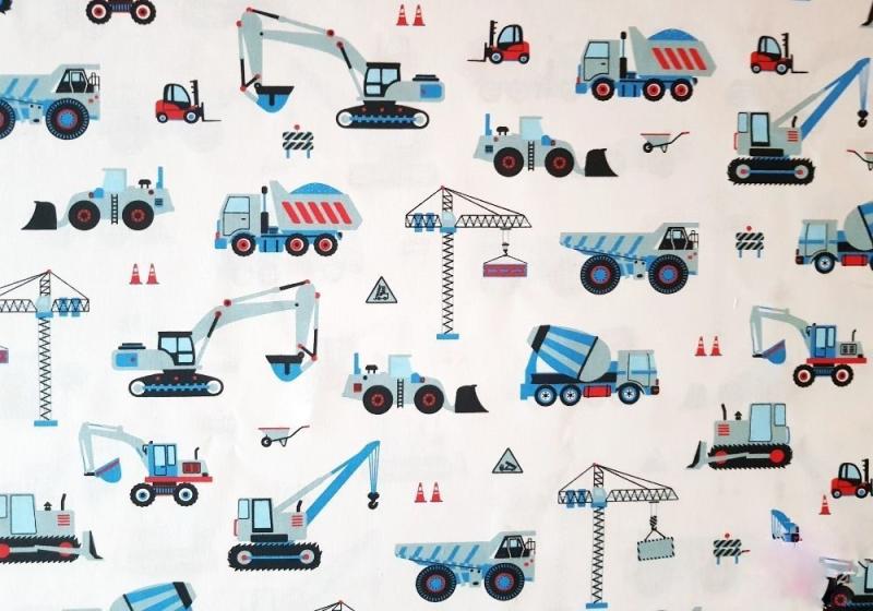 Gyermek mintás pamut méteráru 160 cm széles. A textil a képen látható munkagépes mintájú. Készíthető belőle ágynemű huzat, paplan + párna borítás, ovis zsák, pólya stb. Az ára 1 m-re vonatkozik, minimum 1 m vásárolható, felette 10 cm-enként növelhető a kívánt mennyiségig! (1m 10 cm, 1 m 20 cm, 2 m 40 cm stb) Mosás: 40 °C