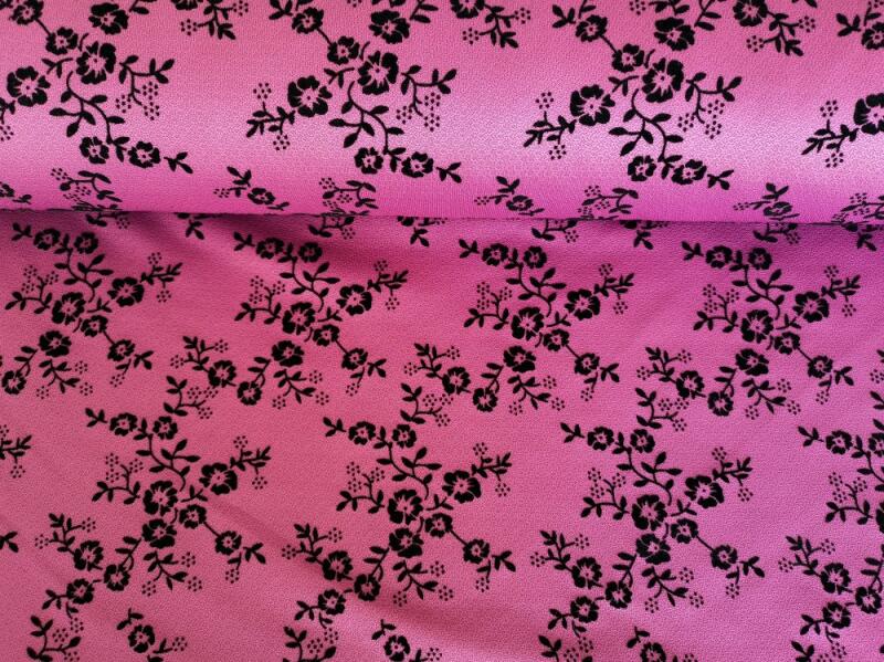Rugalmas műszálas jersey anyag - sötét mályva alapon fekete bársonyvirágokkal díszítve. Szép esésű jersey méteráru, mely követi a test körvonalát. Gyűrődésre nem hajlamos! Készíthető belőle női felső, alkalmi ruha, kosztűm stb. Szélessége : 170 cm. Anyag : 95% poliészter , 5% elasztán. 40°C-on mosható! Az ár a 1 m - re vonatkozik. Legkisebb megvásárolható menny