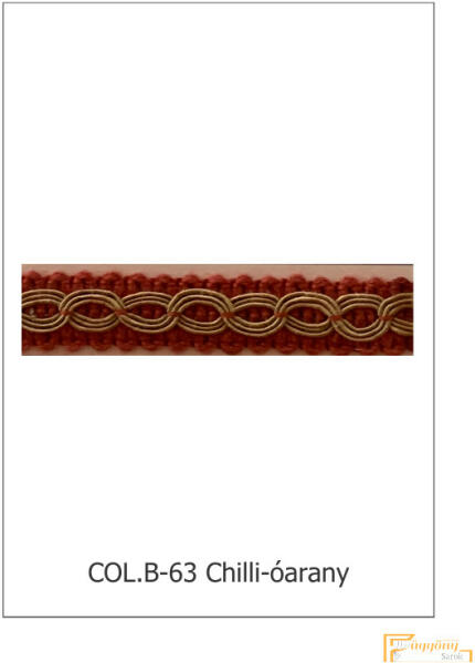 ◤ Kategória: Paszományok ◤ Mérete: 1,2 cm széles ◤ Szín: Chilli-arany ◤ Anyagösszetétel: 70% rayon 30% acetát A megjelölt ár 1 méterre vonatkozik! Legkisebb rendelhető mennyiség: 5 méter Kategória: Paszományok Szín: Chilli-arany Anyagösszetétel: 70% rayon 30% acetát Kiszerelés:25 méter Legkisebb rendelhető mennyiség: 5 méter A bortni szalag olyan mintás szalag, am