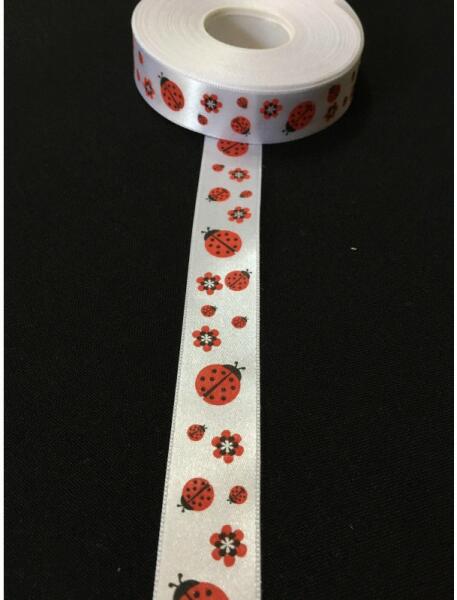 2 cm széles, fehér alapon piros katica mintás szatén szalag. A mennyiséget kérjük centiméterben megadni. Pl. : ha 2,6 méter akkor 260 (centiméter).