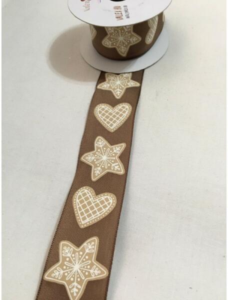3,8 cm széles, barna alapon mézeskalács figura mintás ünnepi szalag, drótos szegéllyel. A mennyiséget kérjük centiméterben megadni. Pl. : ha 2,6 méter akkor 260 (centiméter).