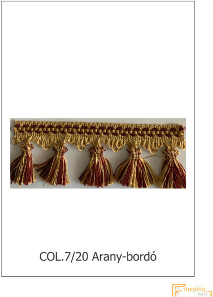 ◤ Kategória: Paszományok ◤ Mérete: Magassága: 7 cm ◤ Színe: Arany-bordó ◤ Anyagösszetétel: 80% viszkóz 20% acetát A megjelölt ár 1 méterre vonatkozik! Legkisebb rendelhető mennyiség: 5 méter Kategória: Paszományok Anyagösszetétel: 80%viszkóz 20%acetát Színe: Arany-bordó Magassága: 7 cm 4 féle megjelenés. 12 szín Legkisebb rendelhető mennyiség: 5 méter Csüng