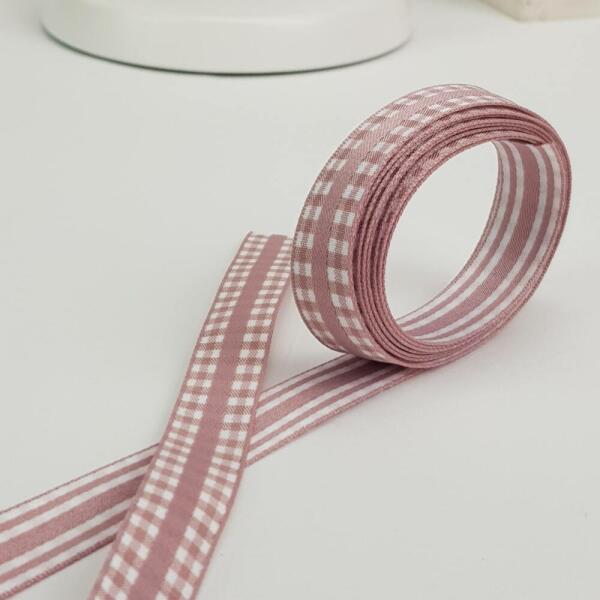 Textil szalag díszítésekhez, díszcsomagoláshoz, asztal- és ajtódíszekhez, kreatív alkotásokhoz. Kétoldalú minta! Külső oldala kockás, belső csíkos.