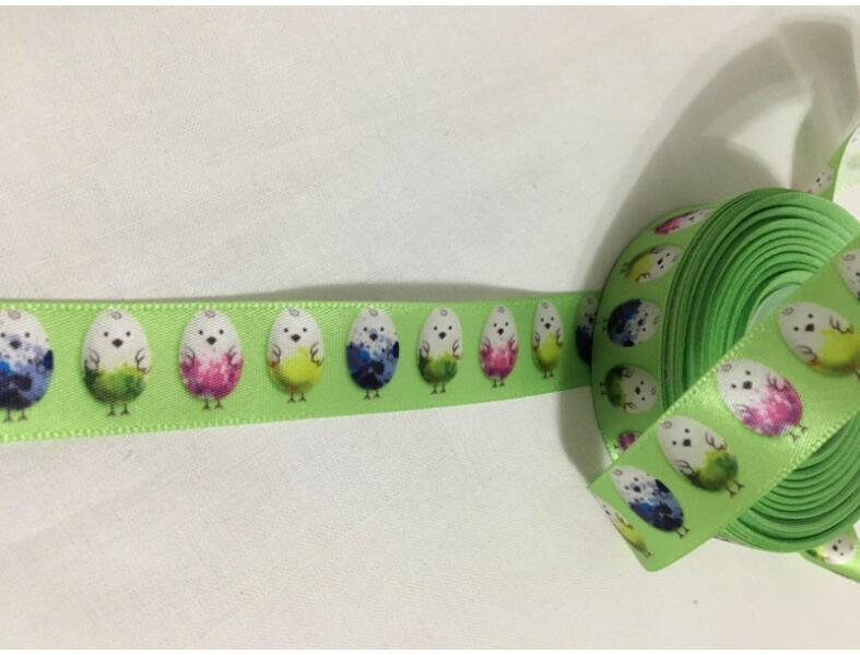 2 cm széles, zöld alapon, színes csibe mintás szaténszalag. A mennyiséget kérjük centiméterben megadni. Pl. : ha 2,6 méter akkor 260 (centiméter).