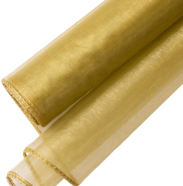 Rendezett, varrott szegéllyel ellátott organza tekercs. Rendkívül népszerű virágkötészeti és kreatív kellék, a dekoratőrök pedig előszeretettel használják esküvői díszítésnek, rendezvény dekorációnak. Pompásan dekorálhatjuk vele a virágcsokrokat, ajándékkosarakat. Asztali futónak, székmasninak, esküvői autó díszítésnek is bátran válasszuk ezt a dekoranyagot.