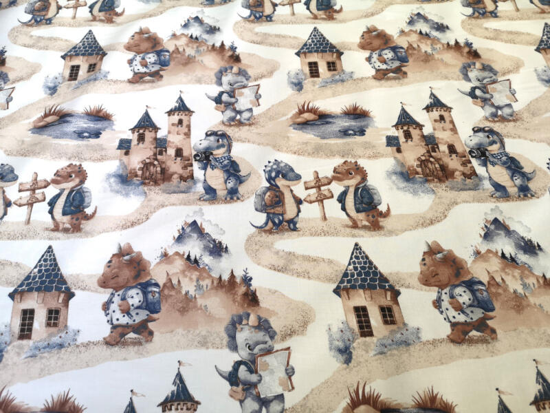 Kék - barna színárnyalatú aranyos dínó bébi figurás pamutvászon textil. Méterárun a minta elfordítva található! A bájos minta örömet okoz a belőlük készített termékekkel a kicsiknek. A kiváló minőségű pamutvászon hosszú ideig kényelmes használatot tesz lehetővé. Az anyag rendkívül tartós, jó nedvszívó és légáteresztő képességű, tapintása kellemes. A 1