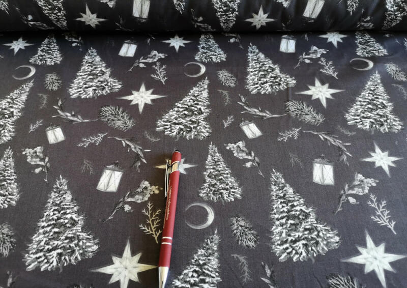 Szürke alapon elegáns ezüstfenyő mintás karácsonyi - téli mintás pamutvászon méteráru. 160 cm széles. Alapanyaga: 100% pamutvászon Készíthető belőle terítő, ágynemű huzat, székpárna, de akár ideális dekoráció konyhaablakba is. Az ára 1 m-re vonatkozik, minimum 1m vásárolható, felette 10 cm-enként növelhető a kívánt mennyiségig! Mosás 40 °C
