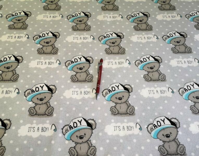 Gyerek mintás pamutvászon méteráru, szürke alapon koala maci motívummal. 160 cm széles. 100%-ban pamut alapanyagból készült. Mosás 40 fokon. Készíthető belőle ágynemű huzat, paplan + párna borítás, dekor függöny, óvodai termékek stb. Az ára 1 m-re vonatkozik, minimum 1 m vásárolható, felette 10 cm-enként növelhető a kívánt mennyiségig!