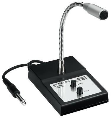PA asztali mikrofon gégecsővel elektrét gömb iránykarakterisztikávalbeszéd gomb és reteszelő gomb Műszaki paraméterek Általános információk Átviteli tartomány 60-12.000Hz Érzékenység 6mV/Pa/1kHz Impedancia 1k Jel/zaj viszony > 40dB Megengedett körny. hőm. 0-40°C Táp 1db 1,5V ceruzaelem (AA) Méretek Gégecső és mikr. nélkül 75x25x110mm Gégecső teljes hossza 200mm T