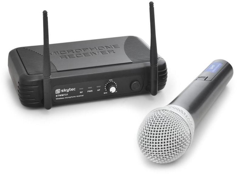 Gyártó: Skytec Modell: STWM721 Műszaki adatok: Mikrofon: 1 db KÉZI mikrofon Igényes kialakítású, jó minőségű mikrofon Elméleti hatótávolság, nyílt terepen: 80 m Stabil hatótávolság: 25-30 m Frekvencia tartomány: UHF Működési frekvencia: 863,100 MHz Elem/akkumulátor típusa: 2 db AA (ceruza elem) Nem meríti az elemet, nagyon ritkán kell benne cserélni Előerősített ki