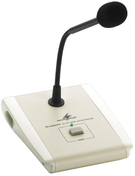 A asztali mikrofon (utasító) PA-40120-hoz, PA-1120-hoz, PA-1240-hez, PA-1410MX-hez és PA-6000 sorozathoz való csatlakoztatáshoz. Bemondás gomb megnyomására automatikus hangjelzés. A hangjelzés kapcsolható. Tápellátás a megfelelő erősítőkkel. RJ-45 csatlakozó PA-40120-hoz csatlakozáshoz. Csatlakozó kábellel szállítjuk (Cat. 5, 3m). 7-pólusú DIN csatlakozó a PA-1120, PA-12