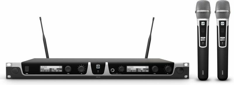 Dual diversity mikrofon készlet, dupla vevő, 2 darab kondenzátor kapszulás kézi adóval, 823-832 és 863-865 MHz True Diversity UHF vezeték nélküli rendszer Rezgéscsillapított dinamikus és kondenzátor mikrofon kapszulák Automatikus csatornakeresés Gombnyomásra történő infravörös frekvencia szinkronizálás Pilot jellel működő squelch áramkör a zaj kiküszöbölésére Vál
