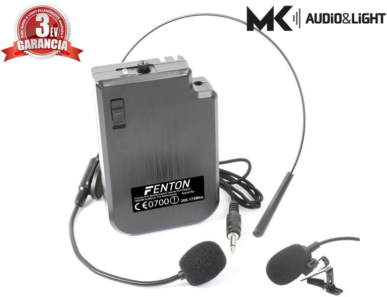 Gyártó: Fenton Modell: BP200 Leírás: A Fenton BP200 VHF Pack egy kiegészítő termék, melyet a Vonyx és Fenton akkumulátoros hangfalaihoz lehet használni. A szett tartalmaz egy zsebbe rakható vagy övre csíptethető adót, egy ruhára csíptethető mikrofont, valamint egy fejmikrofont. Épületen belül, falak között is tökéletesen használható. Jó minőség, torzítások és zava