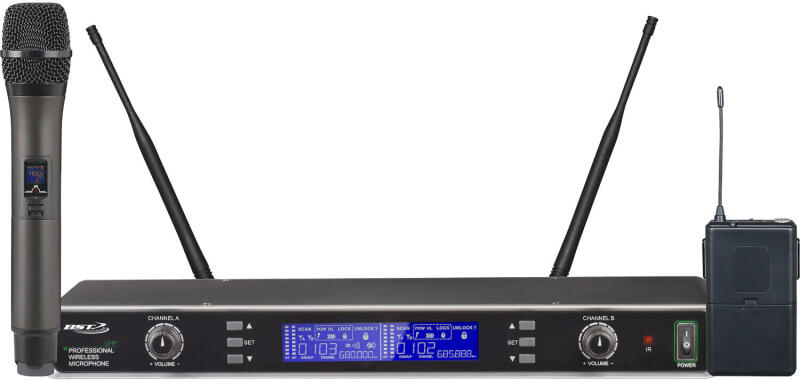 vezetéknélküli kézi mikrofon szett, UHF, 1db kézi- és 1db fejmikrofonnal